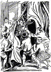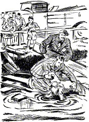 Dorfbewohner eilen herbei und gaffen.
